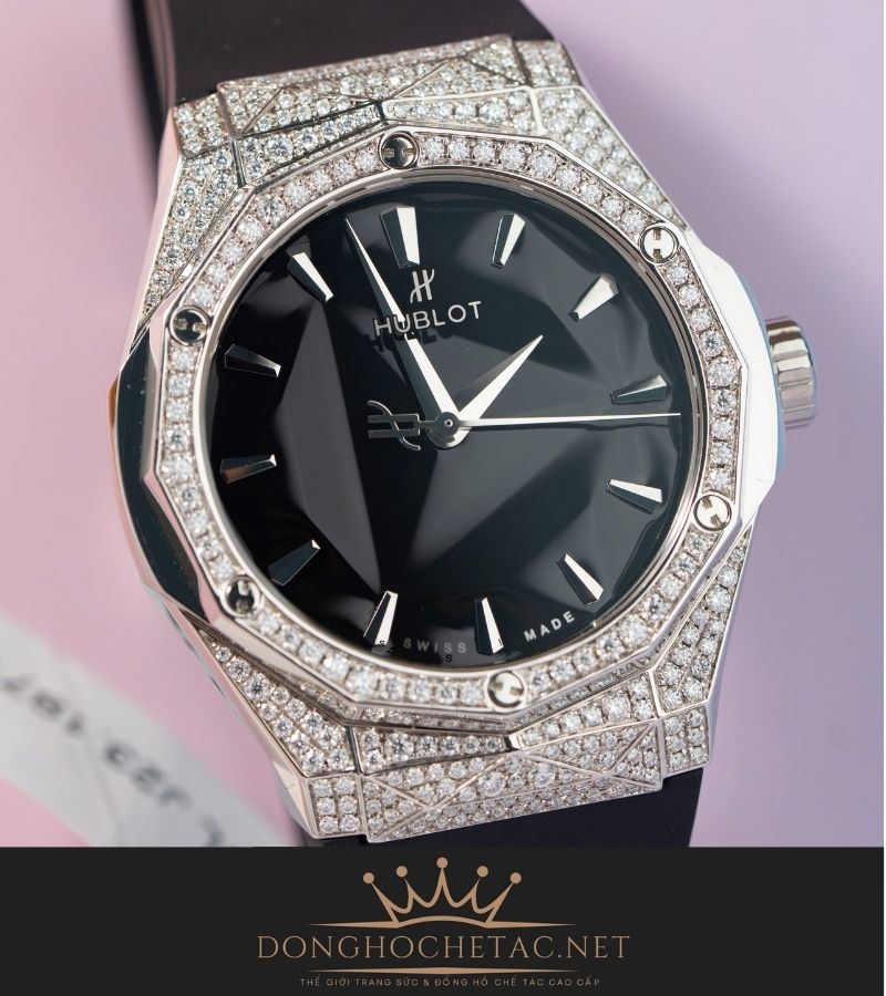Thiết kế: Tái hiện 99% bản gốc, từ thiết kế đa diện Orlinski, bezel đính Moissanite, đến vít chữ H và logo Hublot được chế tác sắc nét.