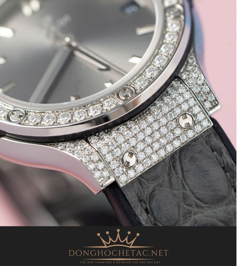 Đồng Hồ Hublot Classic Fusion Titan 33mm Gray Dial Full Moissanite Rep 1:1 Supper Fake cao cấp