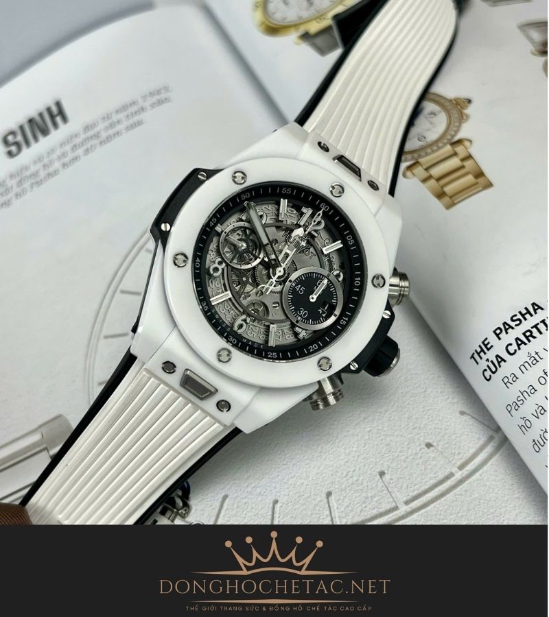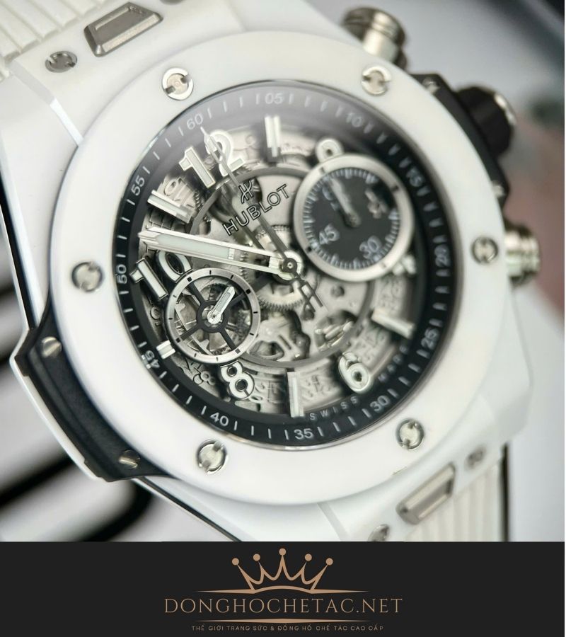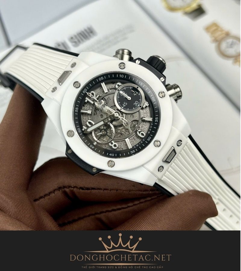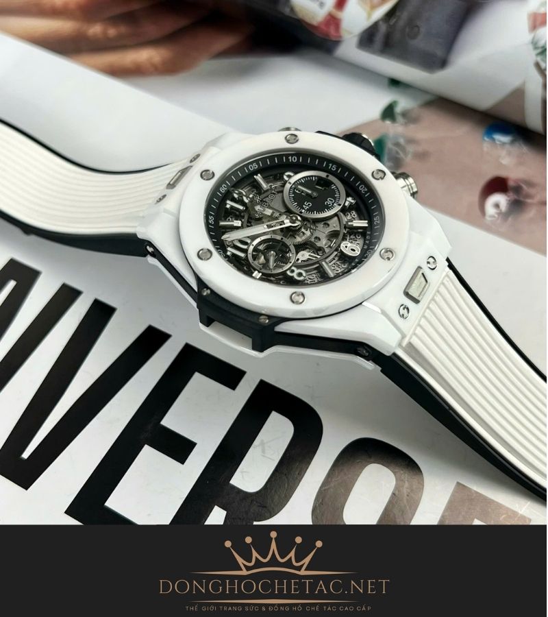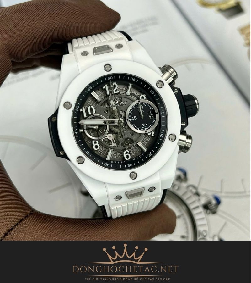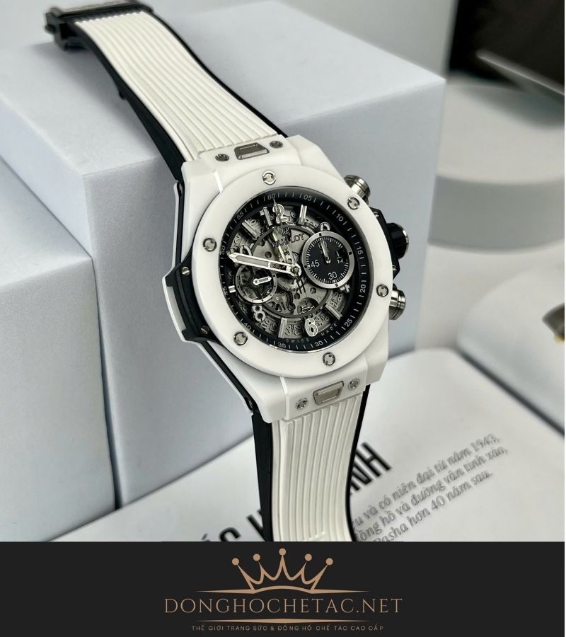 Hublot Big Bang Unico White Ceramic thu hút mọi ánh nhìn với thiết kế độc đáo, mang phong cách hiện đại nhưng không kém phần thanh lịch.