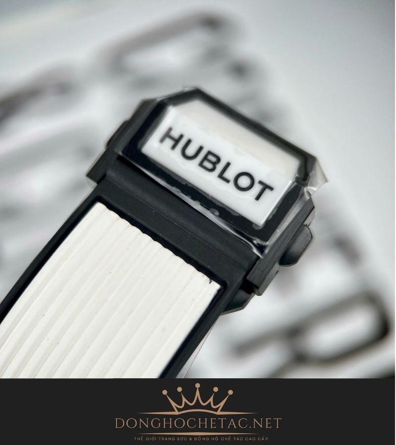 Dây đeo của Hublot Big Bang Unico White Ceramic được làm từ cao su tự nhiên, mang lại sự thoải mái và bền bỉ.