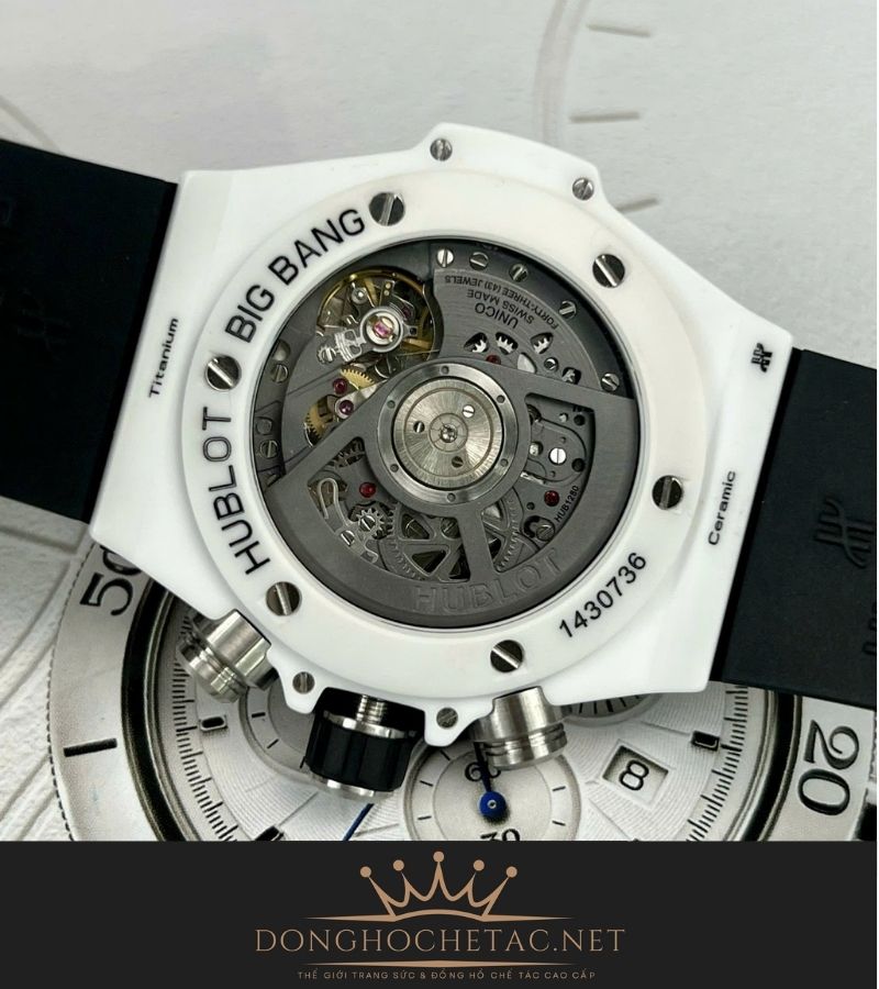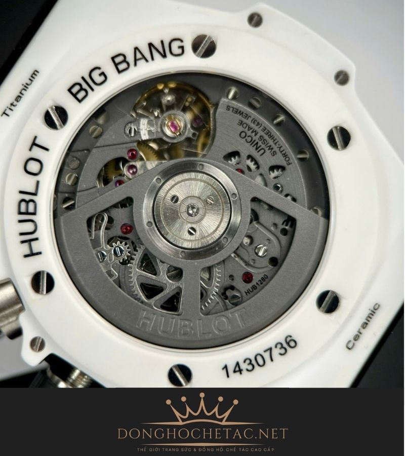 Hublot Big Bang Unico White Ceramic được trang bị bộ máy chronograph flyback tự động Unico, được phát triển và sản xuất in-house bởi Hublot.